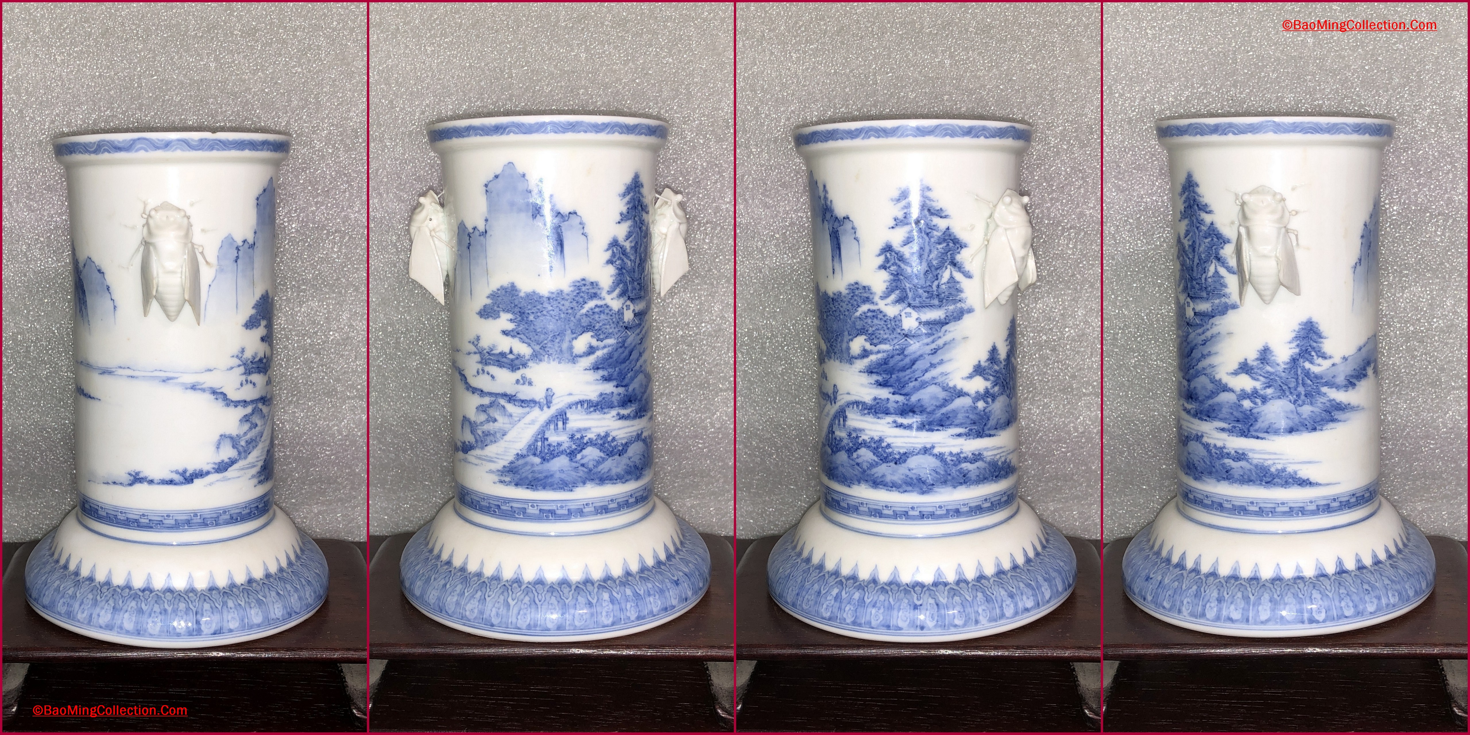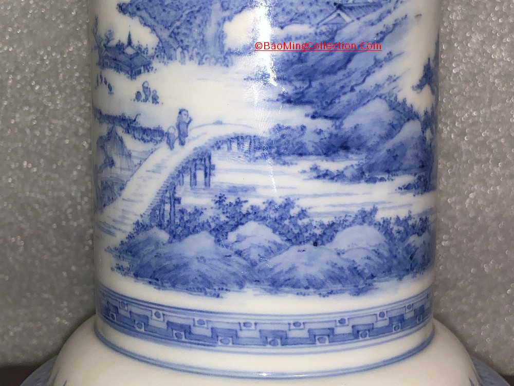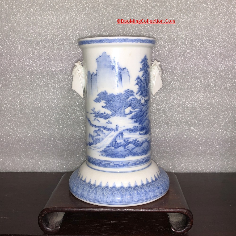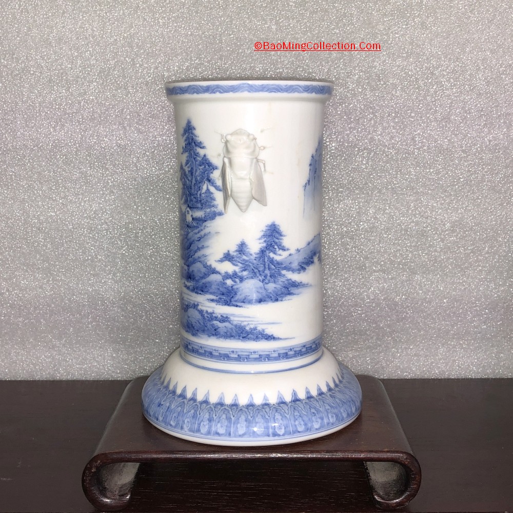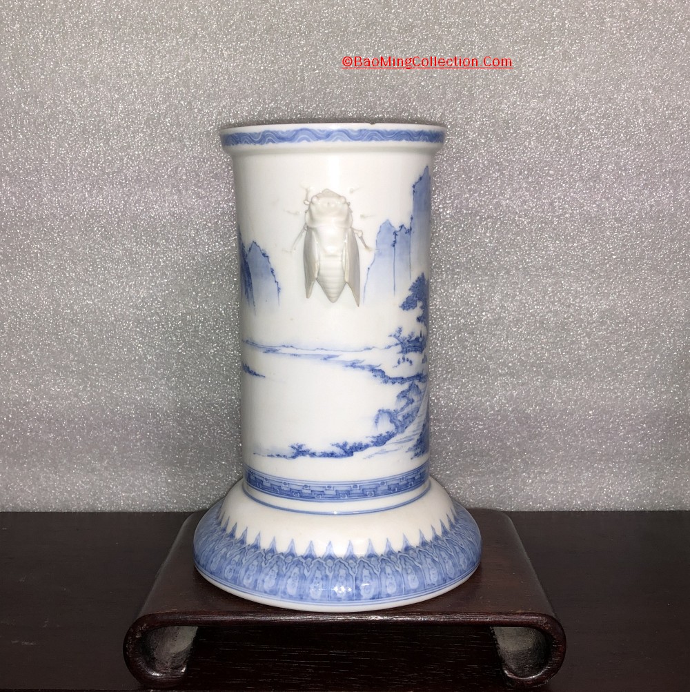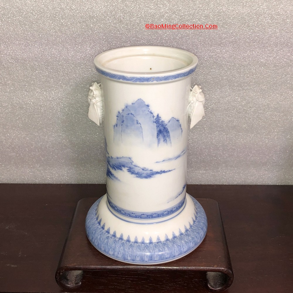 Personal Collection. Item is not for sale. Japanese Hirado ware blue and white porcelain vase with cicada handles and landscape decoration.