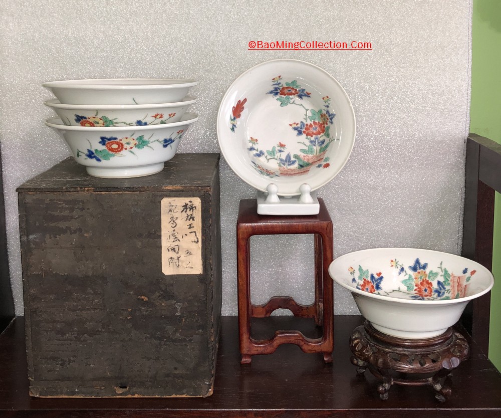 This rare set is the jewel of my collection as the bowls have nigoshide body. They're well kept and in fine condition.