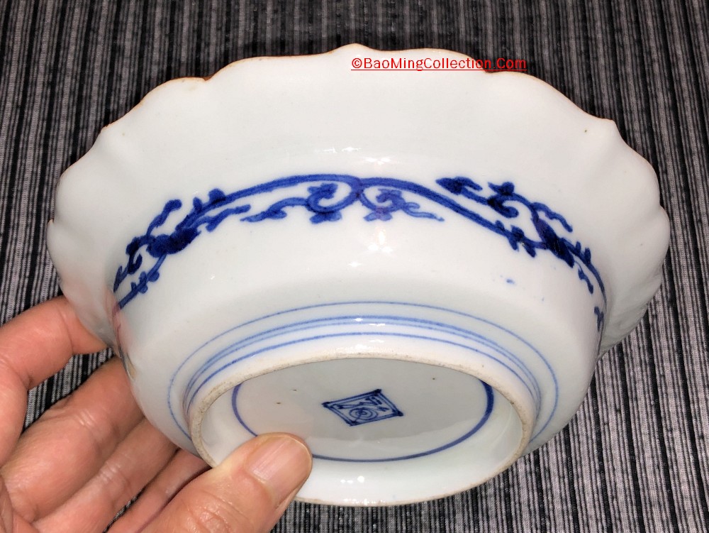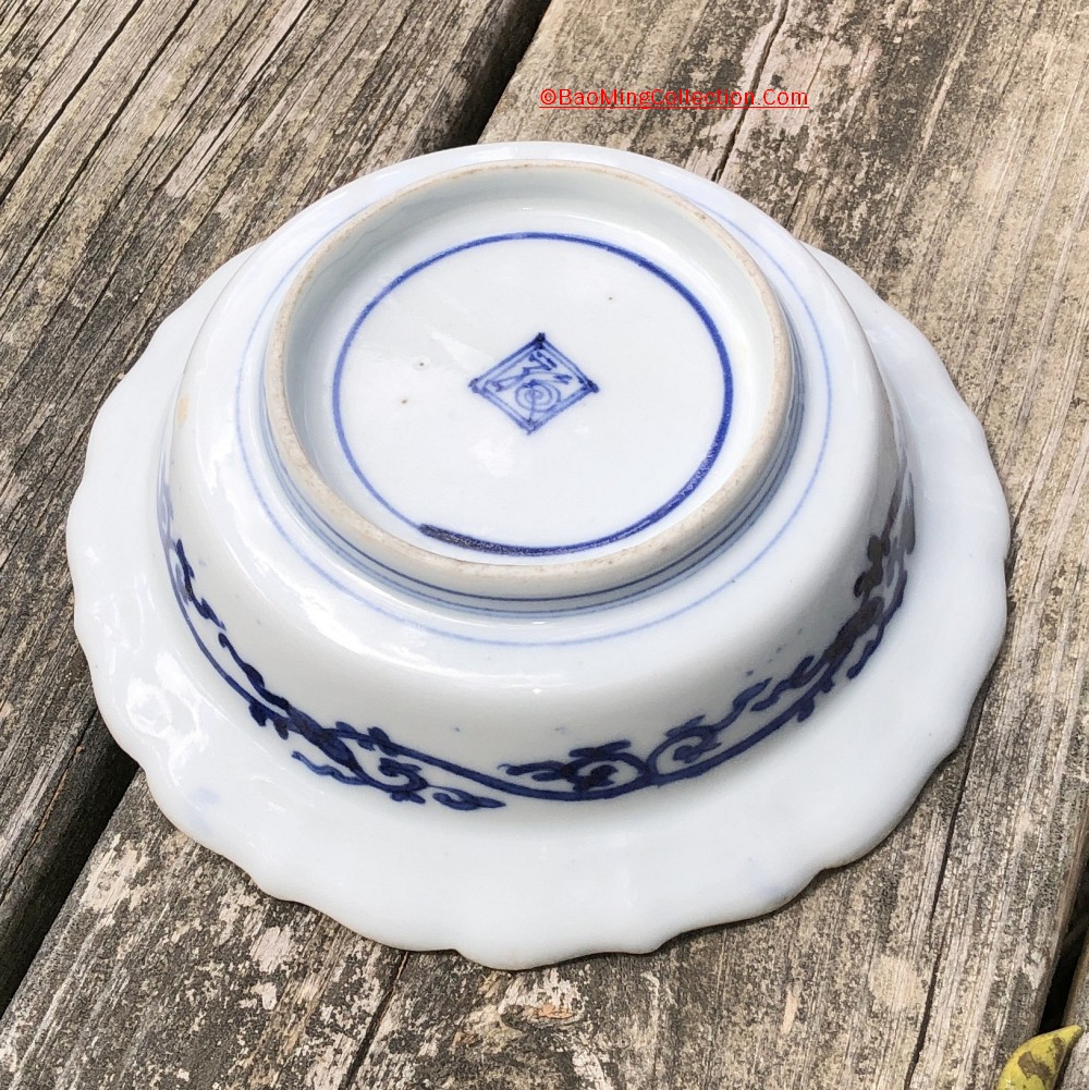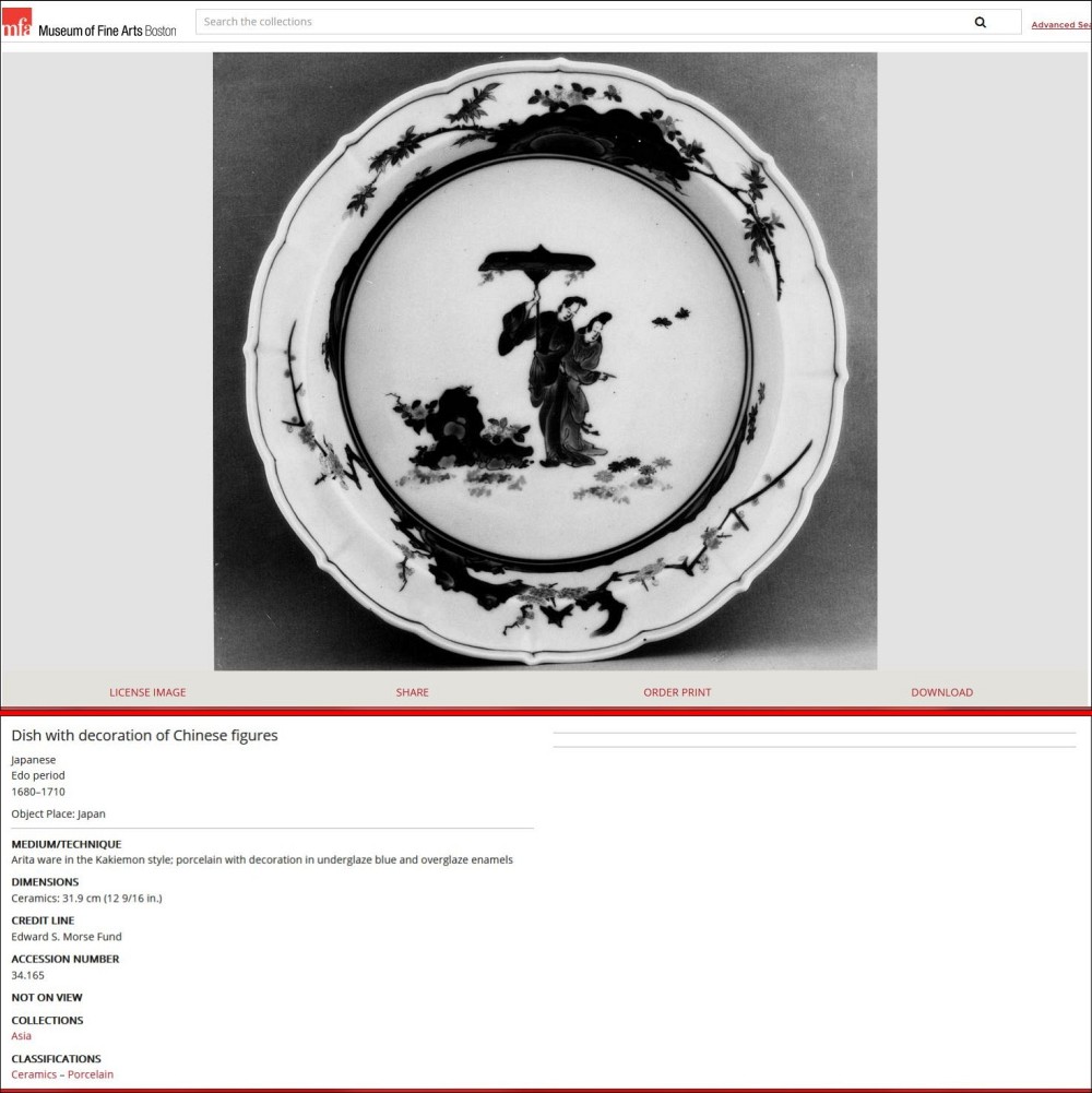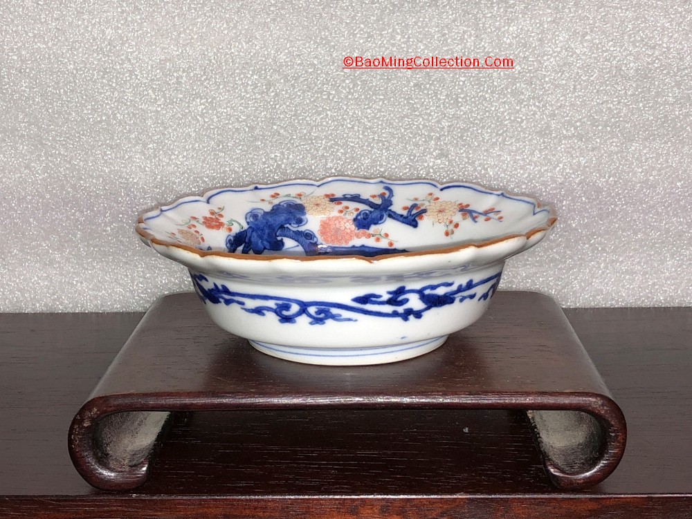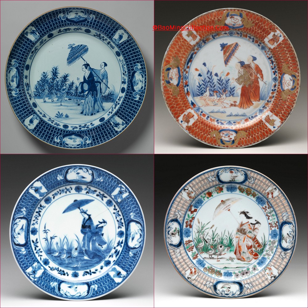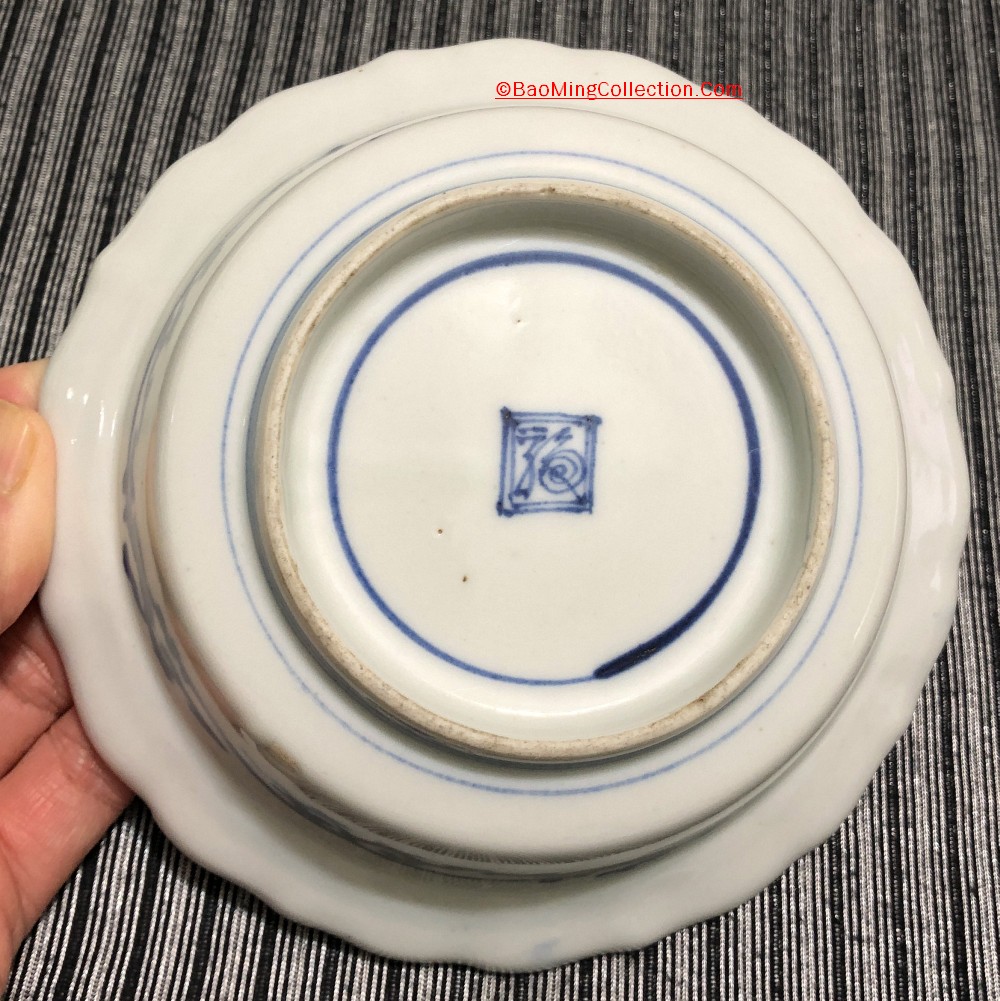 Boston Museum of Fine Art has a very similar bowl (Accession number 34.165), which is dated Edo period, circa 1680 - 1710. Personally, I think this decoration design of inspired by and adopted from Cornelis Pronk (Dutch, 1691–1759). See photos collage of Japanese Imari plates inspired by Cornelis Pronk from Met Museum below. Japanese also has a very similar design, the famous "Crow and Heron" woodblock print by Suzuki Harunobu, circa 1764 - 1772, also from Met Museum.